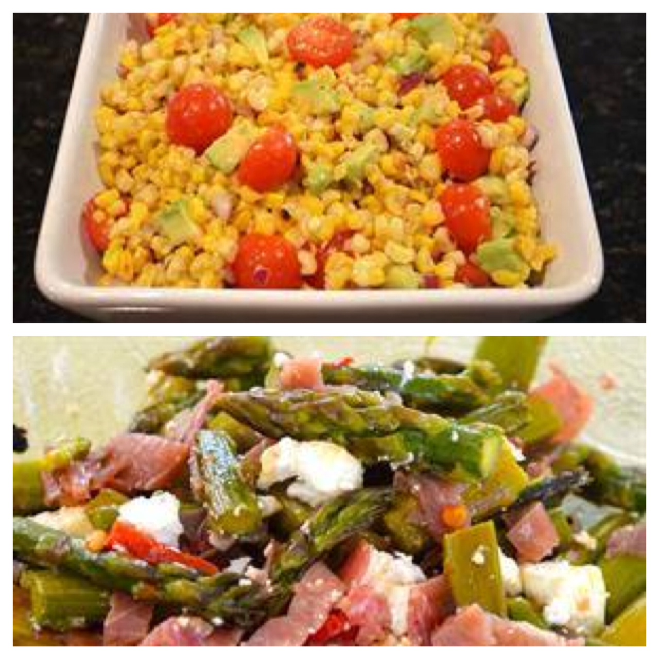 Wash and dry asparagus and break off woody part of the stem. Toss lightly in olive oil and season with salt and pepper, roast in 350 degree oven for about 12 minutes (or place on grill until slightly browned) then and toss with remaining ingredients and vinaigrette. Season with salt and pepper. Serve room temperature. Serves 4.