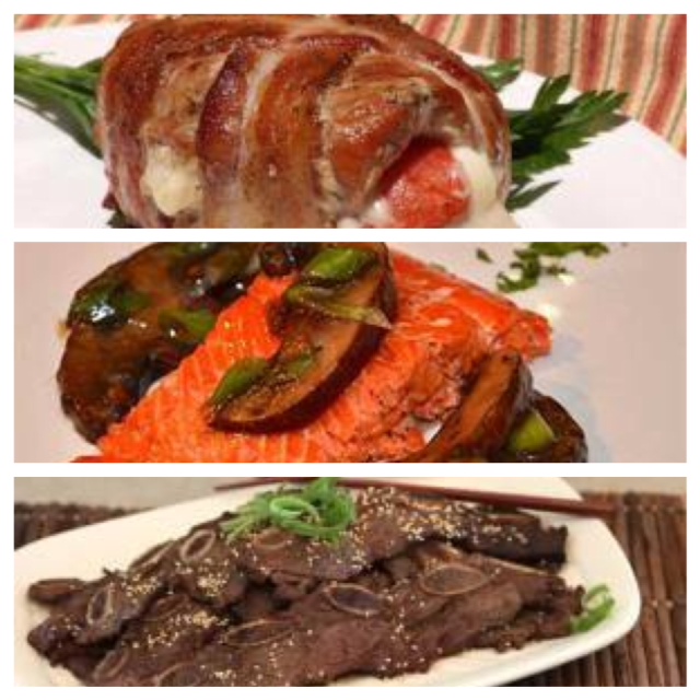 Slice the pork tenderloin down the center on a diagonal, cut 2 slices from the center about ½ inch, pound flat. Slice the rest of the pork tenderloin and pound flat so that you have 8 pieces. Pare up the pieces. Lay a piece on the cutting board and place mushroom, then cheese on top, then a couple of roasted red pepper slices, top with pork tenderloin. Wrap a slice of bacon around pork tenderloin, then going the opposite way wrap another piece of bacon, turn over and secure and tie up with butchers twine. Grill on direct heat until bacon is crisp, finish an additional 5 minutes on indirect heat. Serves 4.