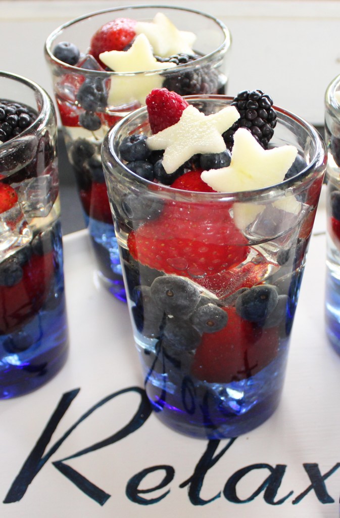 Mix ingredients together, add fruit and garnish with mint leaves.
