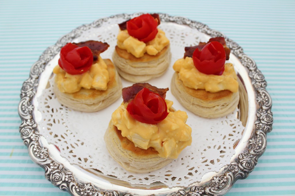 Cook biscuits according to package directions. Let cool and slice in half. Set aside.