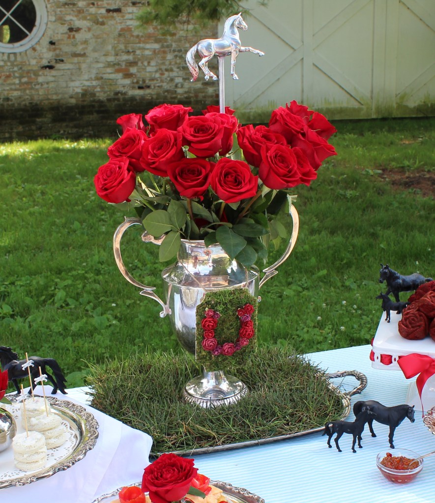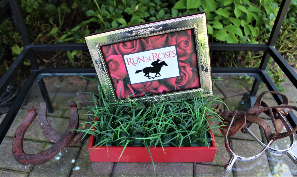 Garnish: ribbon; herb bouquet of fresh lavender, fresh thyme sprigs, and fresh mint sprigs